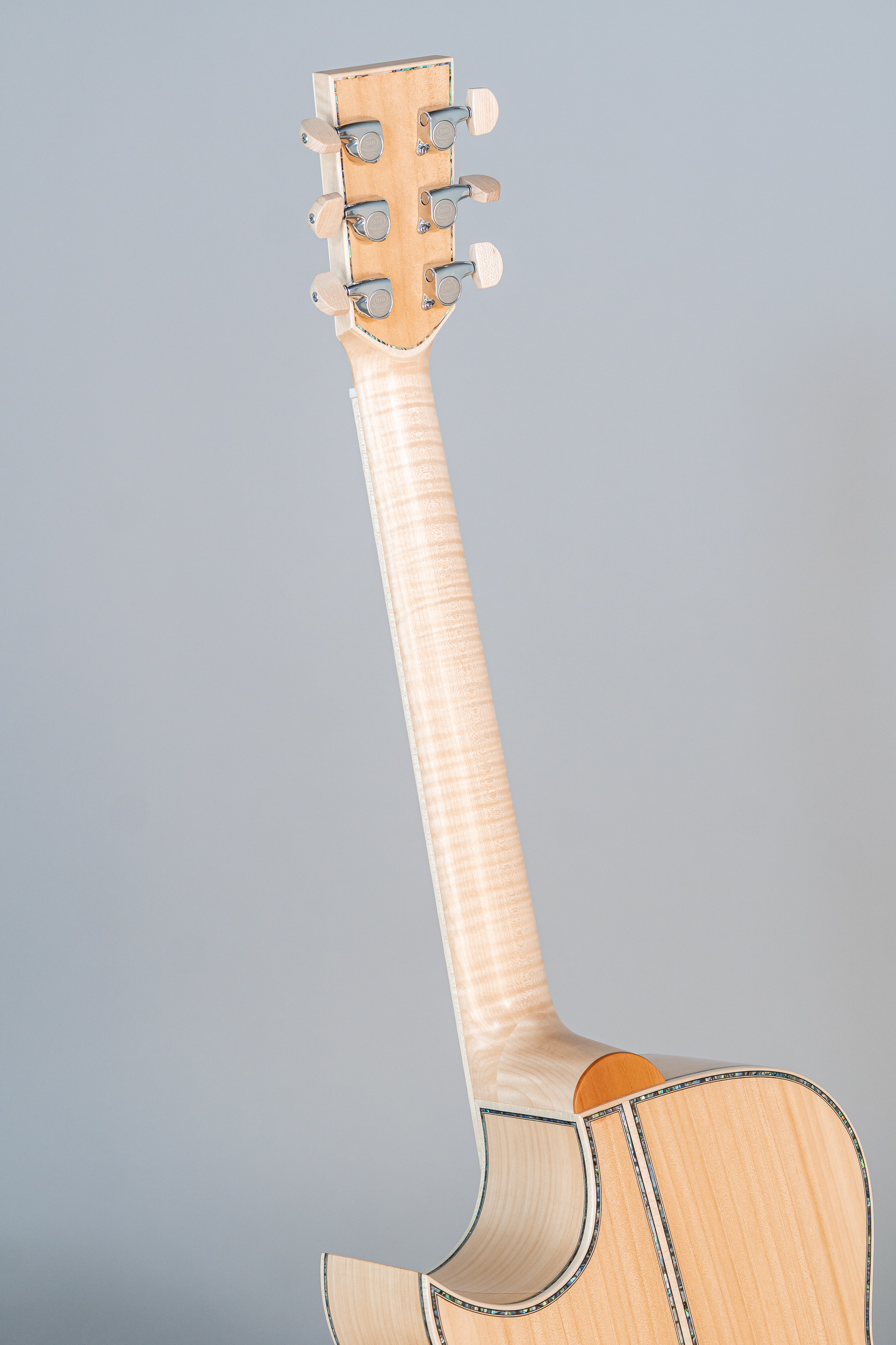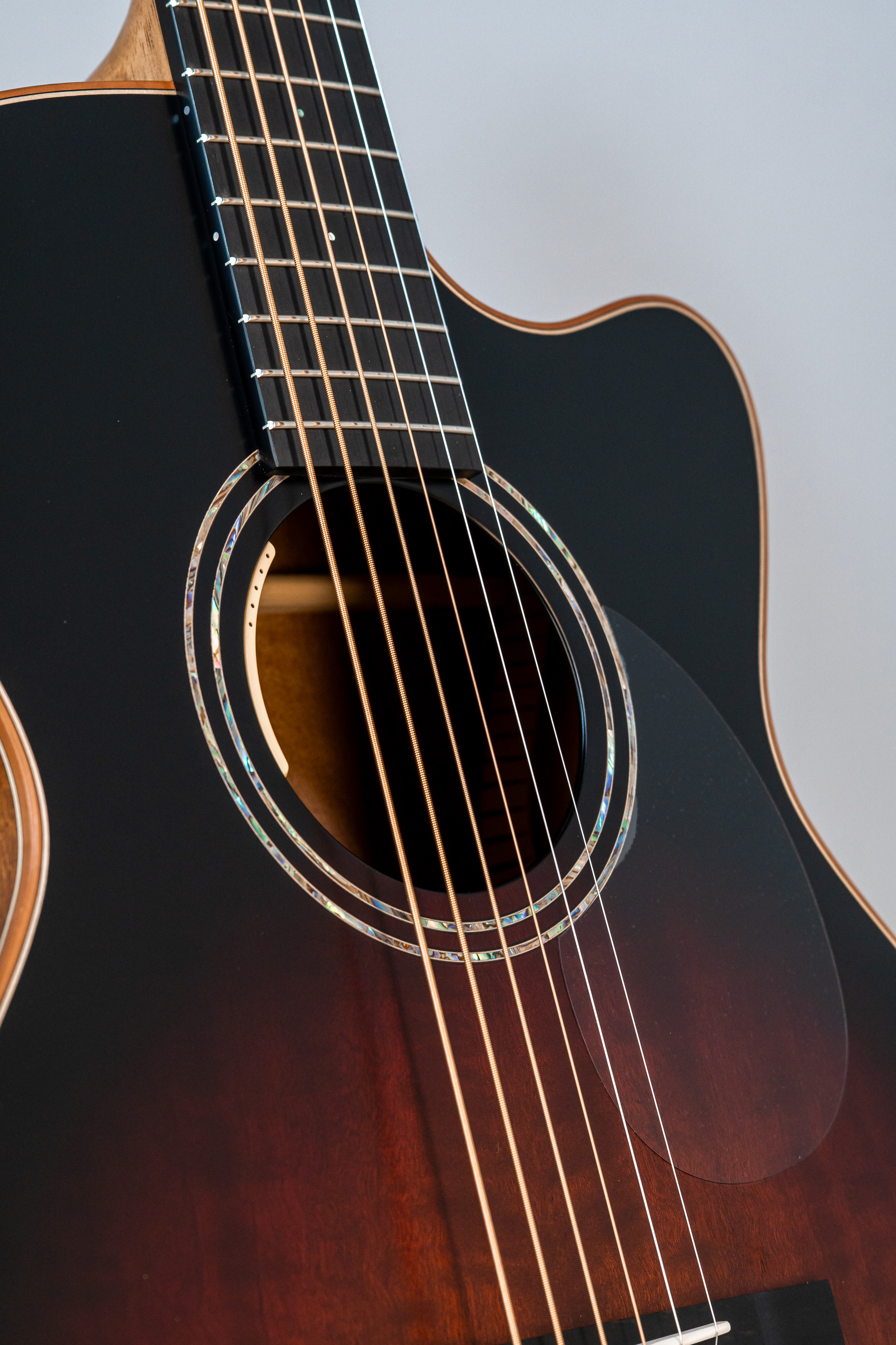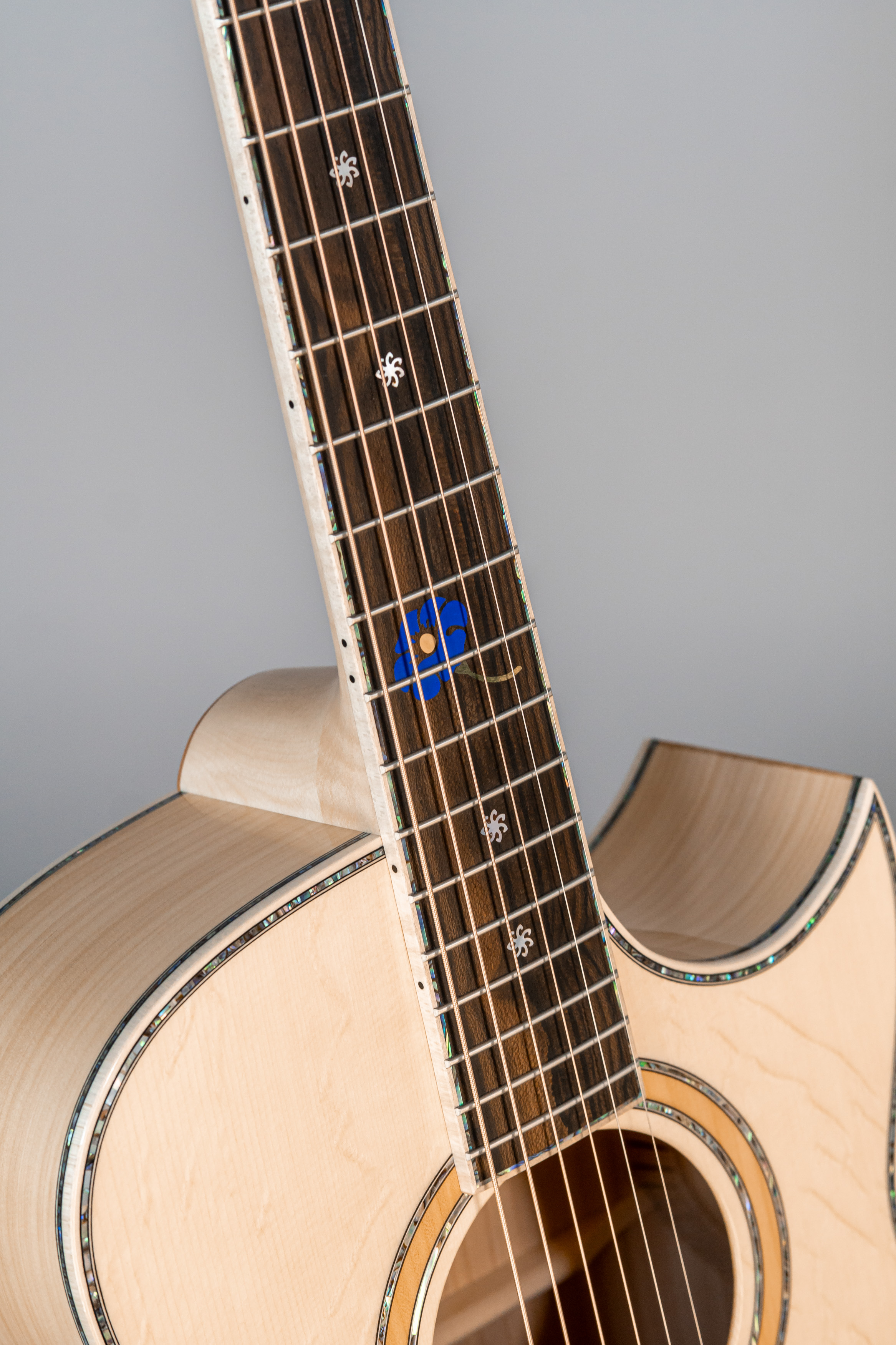 - Margini tavola, fondo e fasce intarsiati in abalone, cutaway