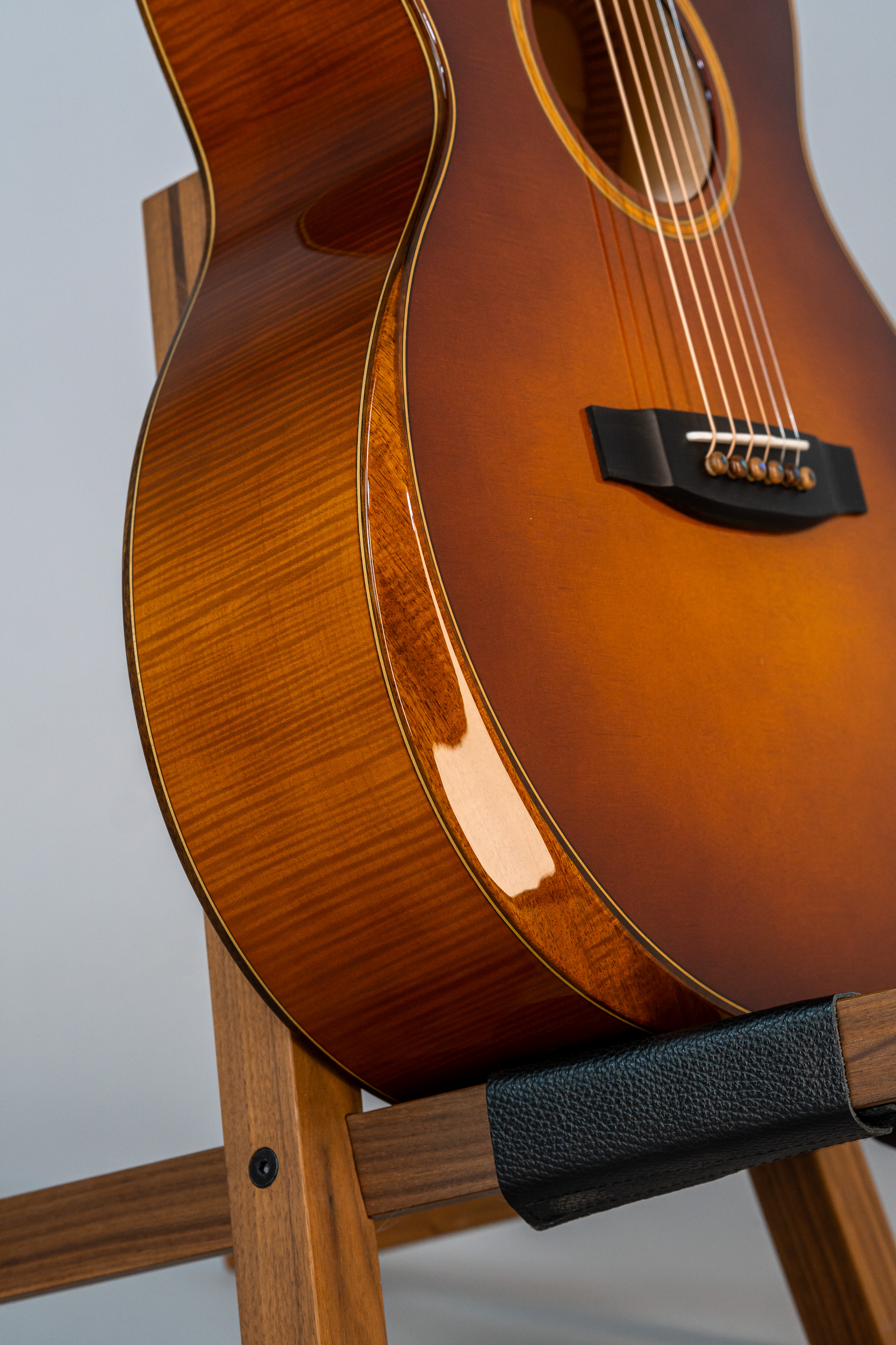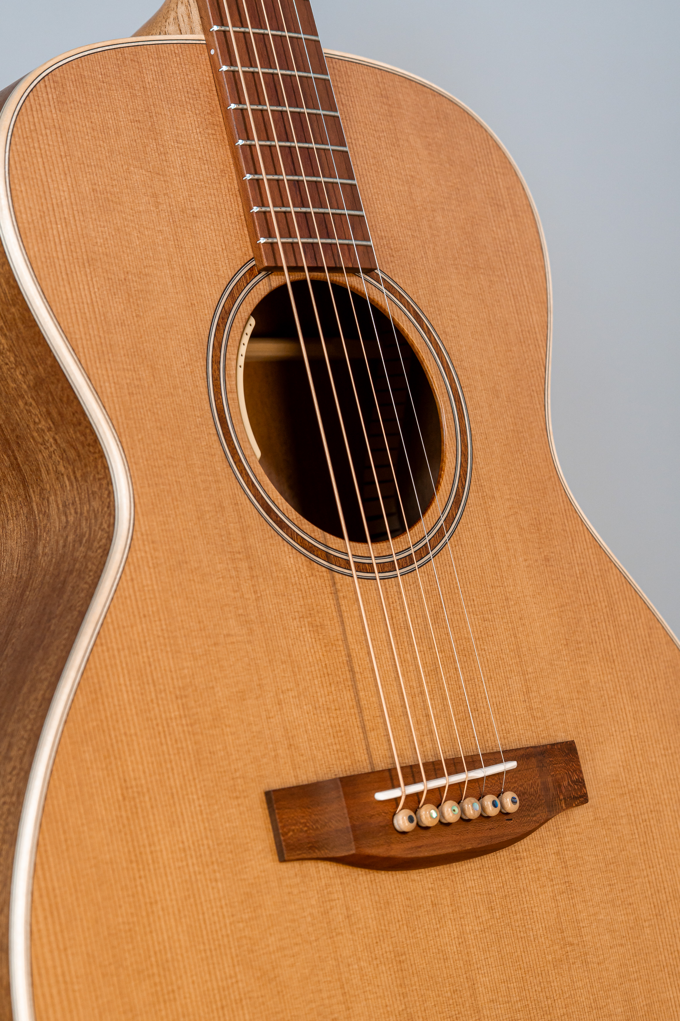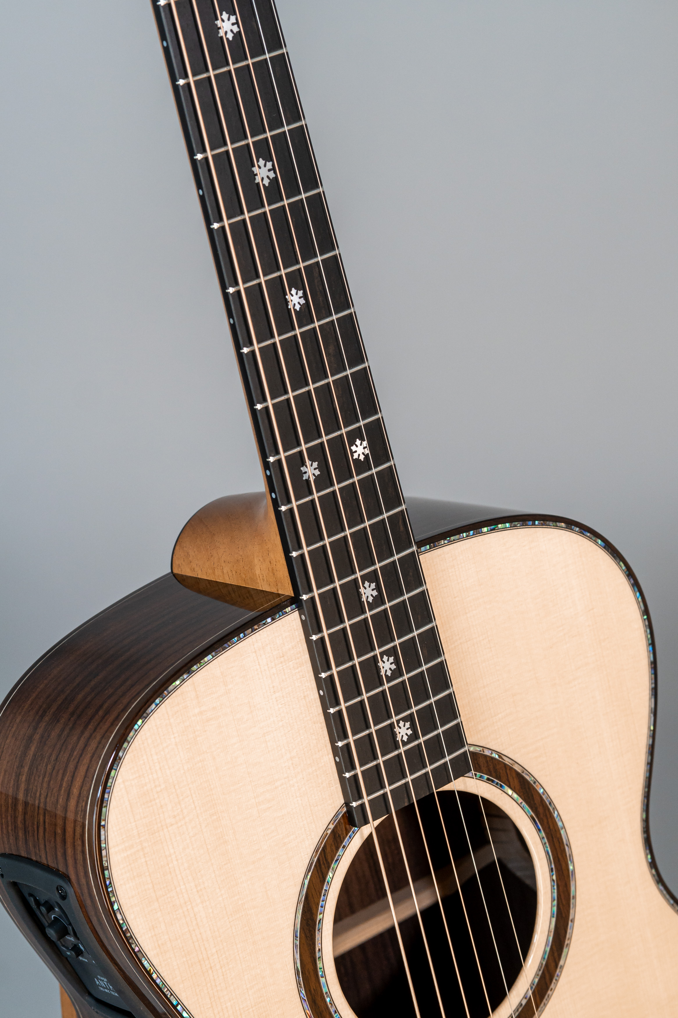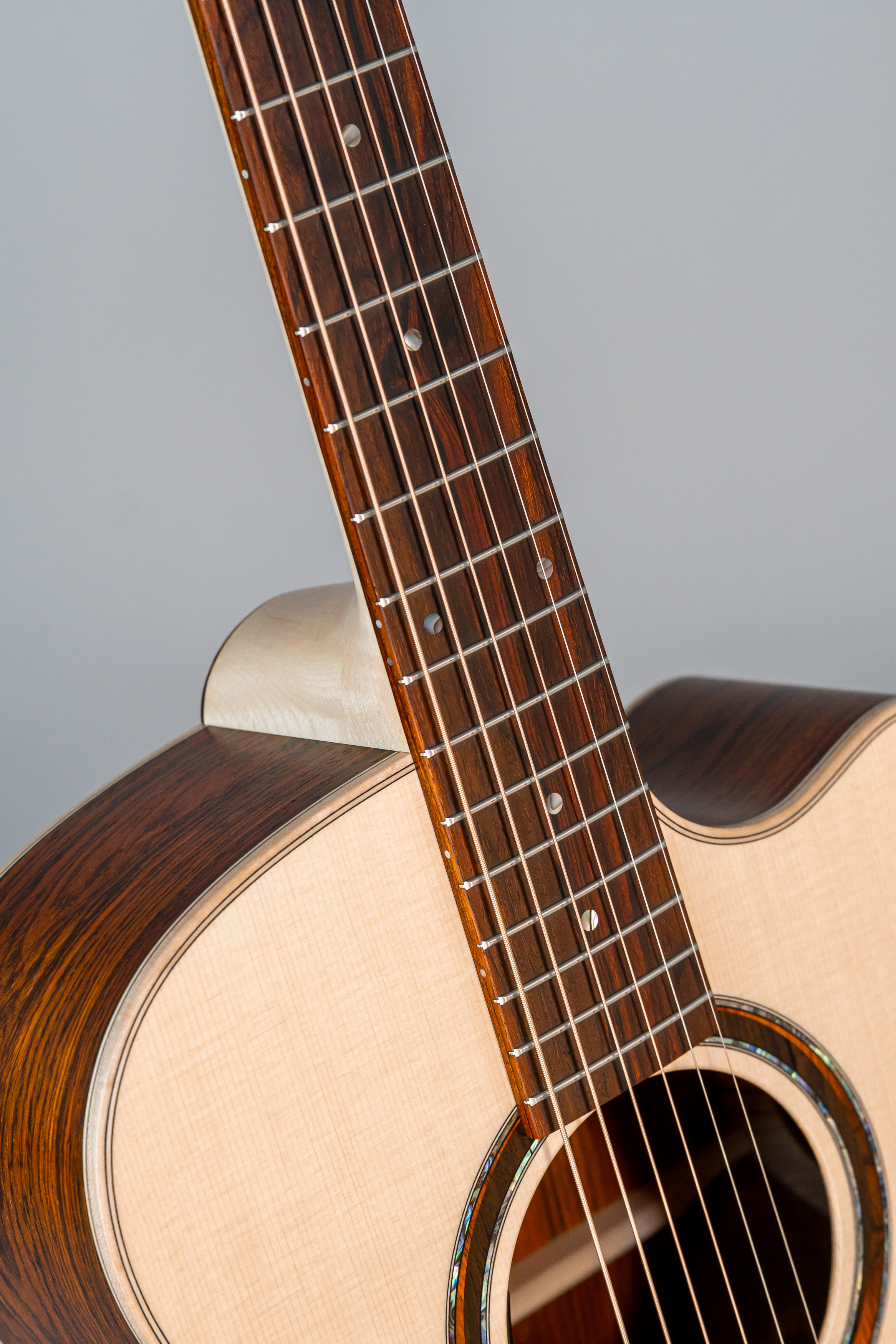 - Margini tavola, fondo e fasce intarsiati in abalone, cutaway